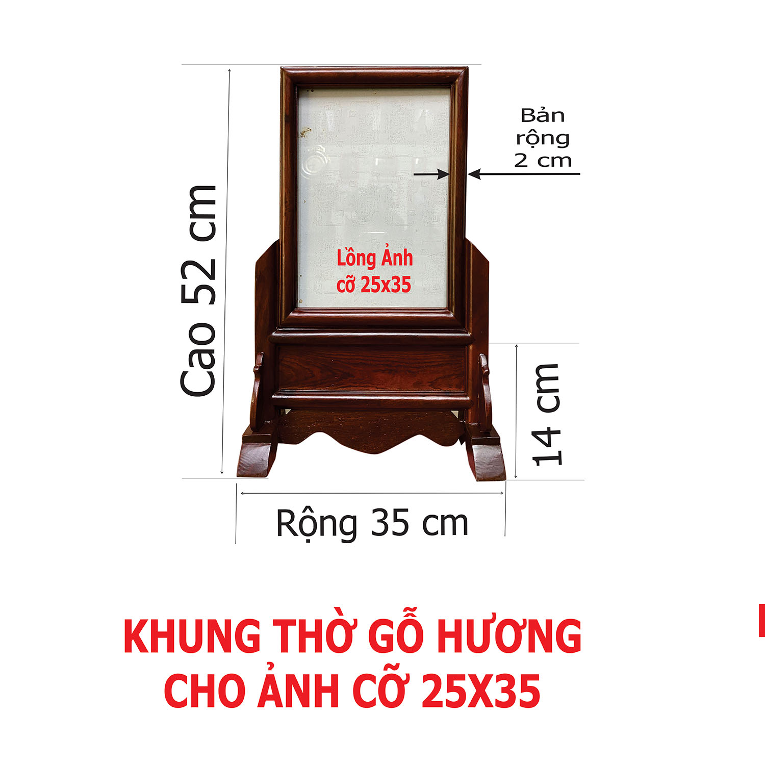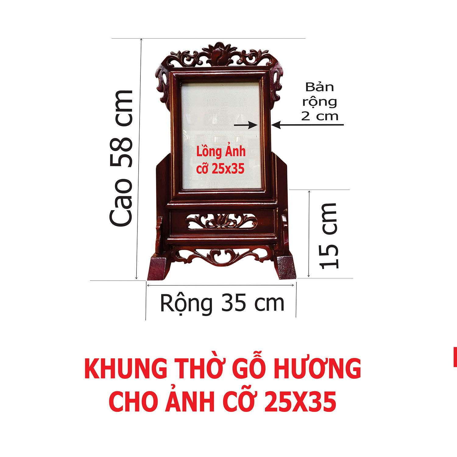 Khung Ảnh Thờ Cỡ 25x35. Chất Liệu Gỗ Hương. Khung Thờ Gỗ Hương Được Thiết Kế Với Họa Tiết Hoa Văn Độc Đáo. Màu Gỗ Trầm Nâu Đỏ Chân Thực, Được Trạm Trổ Rất Công Phu. Có Nhiều Hình Thức: Để Bàn Hoặc Treo Tường.